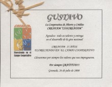 "...reciban un afectuoso saludo y nuestro agradecimiento por toda su entrega y compromiso en la Presentación de su Show "TRABAJO, FAMILIA Y SUEÑOS" con chistes, anécdotas, flores, canciones y mucho talento durante la celebración de nuestros 15 Años de vida cooperativa en nueve ciudades de Colombia."